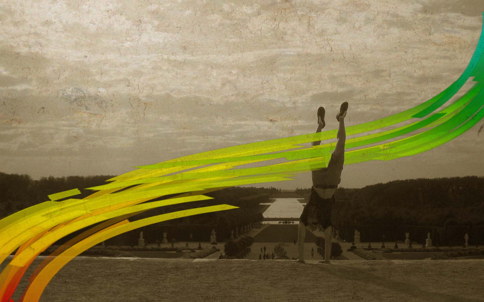 The background photo was taken of me doing a handstand on the steps of Chateau de